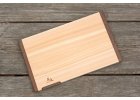 Dřevo z japonského cypřiše SHIMANTO HINOKI a lemy z ořechu. Rozměr: 180 x 280 x 15 mm